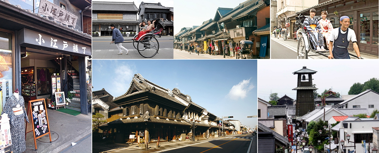 位於琦玉縣,有「小江戶」之別稱的川越市是江戶時代時,以作為川越藩的城下町而繁榮的都市,市區內保留了許多江戶時代留傳下來,具有歷史性的街道以及寺院,四處充滿著思古幽情。以黑磚瓦片製造的藏屋聞名,整座城市更被指定爲「日本傳統的建築物群保存地區」樸素又懷念的街頭,被指定為「味道風景百選」。 時代之鐘 高高聳立在小江戶街道上的鐘樓,位於藏造街中央的鐘樓距今已有400多年歷史,雖然歷經多次重建,也隨時代進步改成機械鐘響,卻仍每天勤守報時的責任。 菓子橫丁 是一條長約80公尺的狹長小巷,名符其實地聚集了許多粗點心舖、丸子鋪、煎餅店等等,也可以找到不少懷舊童玩,具有濃濃的傳統日本風味,簡單的零食方便一邊享用一邊漫步其中,從食文化一窺當時的生活。