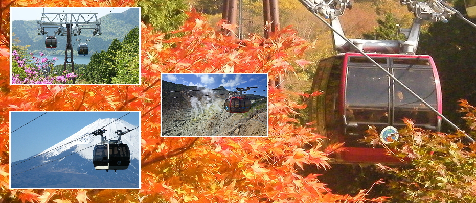 箱根空中纜車 是日本最長、世界上第二長的空中纜車,僅次于瑞士的 Kriens Bahn。纜車每分鍾發車一次,每次可載18人,遊客在纜車上可以體驗直上雲霄的感覺。在早雲山和大涌谷之間的最高處,纜車距地面 130 公尺。底下可看到巨大的火山口,令人嘆為觀止。從纜車上可以看到蘆之湖和神山背後富士山的全景及四季景色。