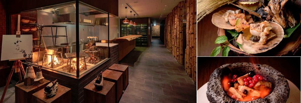 米其林二星 - NARISAWA餐廳 成澤由浩每天根據當天最新鮮當季食材為每位客人提供量身定制的 Omakase 風格的菜單 午餐供應Half collection 套餐,晚餐為Seasonal collection 套餐 有招牌前菜「里山的風景」、現場發酵的「森林的麵包」、海蛇高湯、黑炭「神戶牛扒」 炭烤鵪鶉配杏仁、將牛蒡根連同附著其上的泥土一起油炸製作出的招牌菜泥土湯「Soil 2001」等 10 多道菜品 把自然環境的概念,融入了所有料理之中。