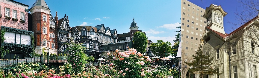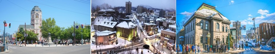 著名北海道「白色戀人」巧克力餅乾博物館,城堡般的外觀,讓人猶如置身於童話世界。 舊日札幌農學校練武場的時計台,在明治 1878 年 10 月修建,樓高兩層的木造西式洋館,塔上的時鐘美國製造,是日本現存最古老的鐘樓。時計台自建成以來,以鐘聲為札幌報時,迄今從未間斷過。 舊道廳 巴洛克風格的西式建築,當地人昵稱為「紅磚館」,當年北海道開拓設廳就在此地,是一棟具歷史意義的建築。館內基本保持了當年的風貌,並設有展示有關北海道開發歷史的資料和各種有關實物,是日本國家指定的重要保護文物。