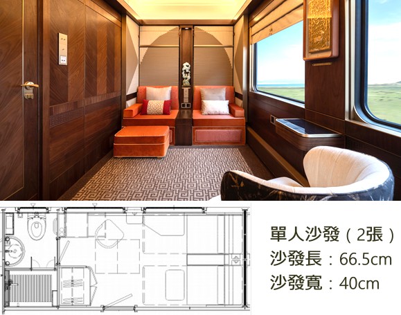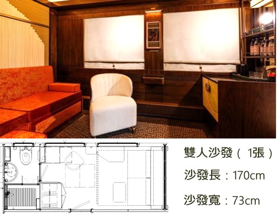 每一節車廂配備一位24小時管家,有洗衣烘乾服務、每晚夜床禮遇、無限享 Mini Bar 服務