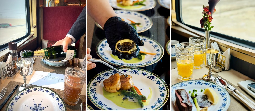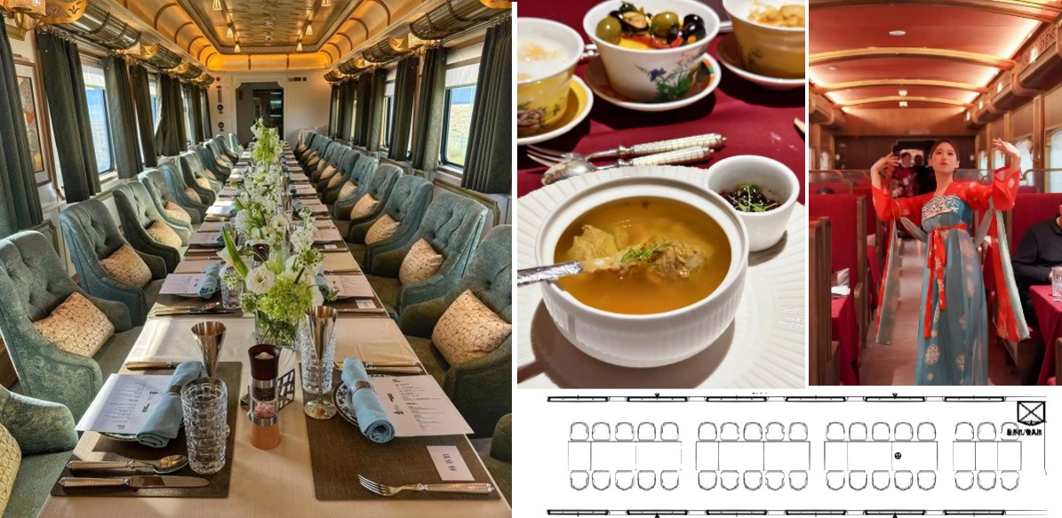 絲路夢享共有兩節餐車, 兩節餐車兩種風格,卻同樣讓人陶醉其中。 無論是中式的古典韻味還是西式的浪漫氣息,都讓人在這段旅程中留下難忘的回憶。 在這裡,美食不僅是一種享受,更是一種文化的傳承與融合。