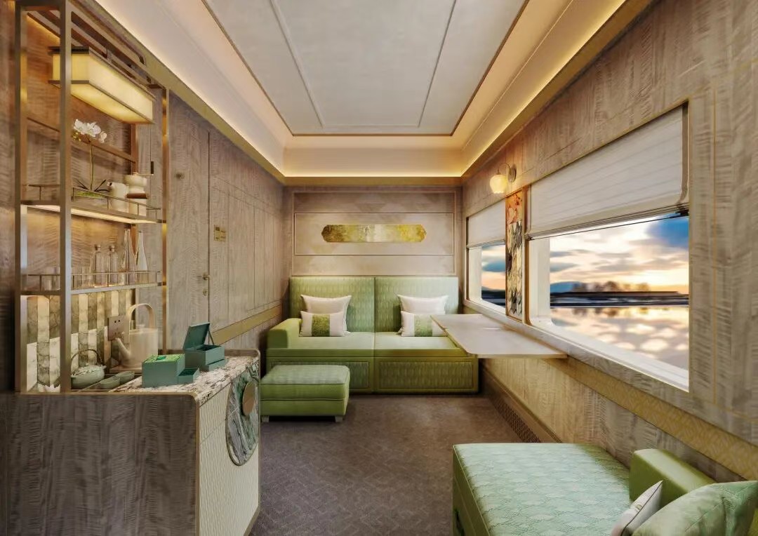 絲路夢享號列車內部將頂奢酒店的體驗完美結合於移動的列車之上