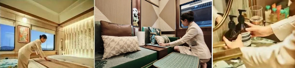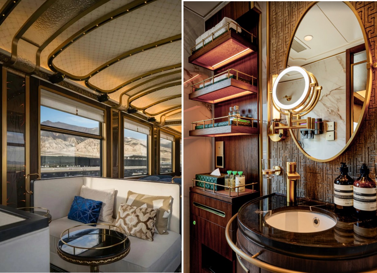 這列由全球知名設計公司HBA操刀、清華美院團隊打磨的列車,從不是簡單的交通工具,而是把高端度假的所有想象,都裝進了移動的車廂,既有東方美學的雅典,又融入絲綢之路的元素,與大西北、新疆之旅簡直是最完美的適配。