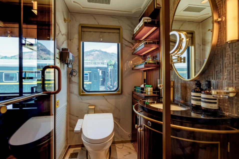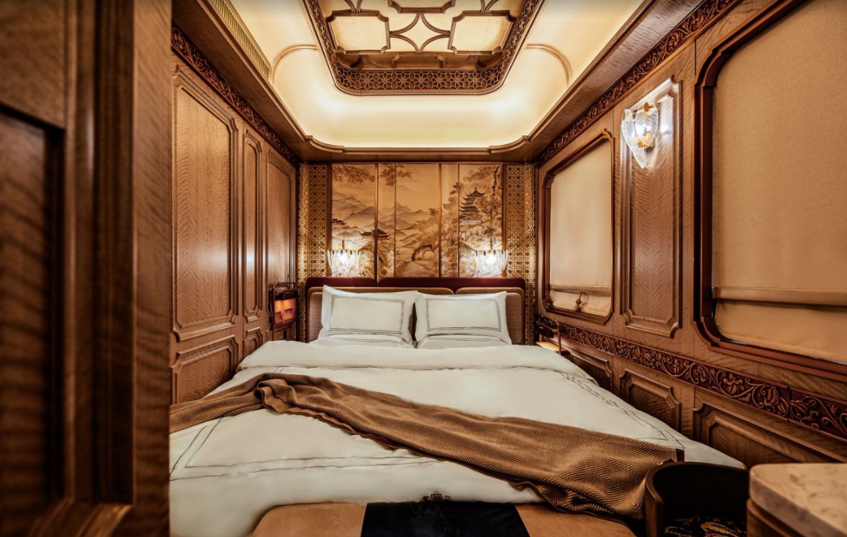 絲路夢享號全車編組15節,除全獨立衛浴軟臥車廂外,還包括客廳車、餐車、酒吧車等多功能車廂,全列共有高品質客房38間,每一間都是私享小天地。