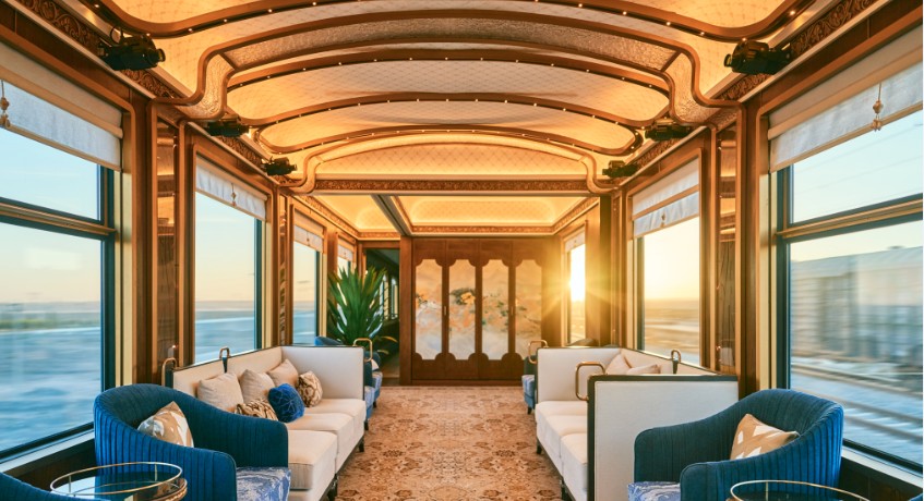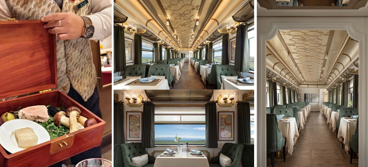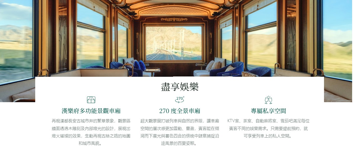 15 節車廂,構建出移動的博物館、流動的會客廳。 塔里木湖的湛藍、青海湖畔的金黃花海、敦煌戈壁的蒼茫,以無與倫比的視角撲面而來,成爲社交、品茗或獨享天地大美的至臻之地。 這不僅是觀景的窗口,更是融入天地、放空思緒的生活場域。