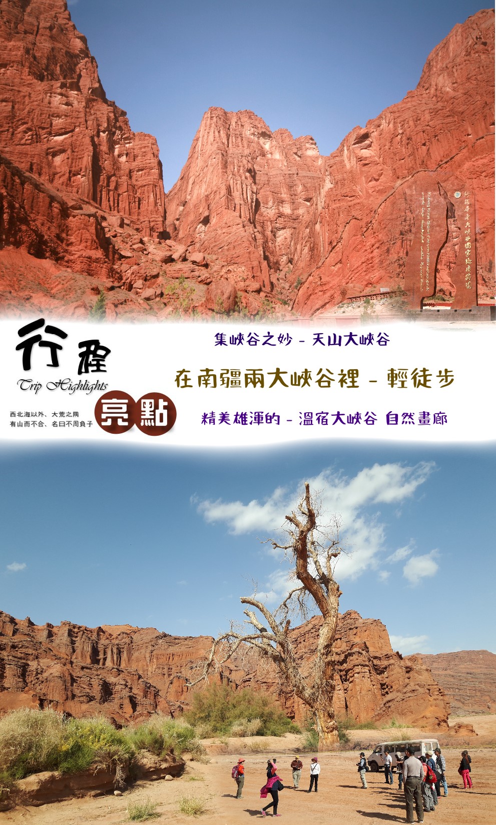 歡迎參加本公司行程,以上行程均為參考行程,有關於行程、餐食、飯店、等各方面的事情都有可能因不可抗力因素而有變故,如天災、政治性任務、臨時封路...等。基本上以當團的領隊或車兼導因地制宜的做立即反應, 行程上我們盡可能的依照上訴的行程安排,如有變更也以不損及旅客權益的狀況下做行程上的其他安排。在萬一有發生狀況時、我們希望現場人員能及時的提供 貴賓們最安全、也是最立即的反應與協助,讓您對本次的自主性的旅遊行程能夠得到最大的滿意。