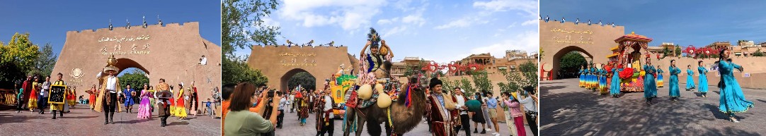 每天中午12點、下午16點半有十二木卡姆表演,十二木卡姆是一種維吾爾族傳統的音樂表演形式,後面還會邀請觀看表演的人一起跳舞,我們來的時候恰逢古爾邦節假期,很多少數民族遊客,說跳瞬間就好多人上去跳起來了