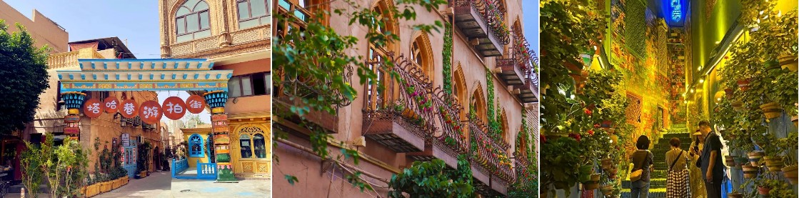 熱斯坦老街:南疆的人文色彩 維語中“熱斯坦”意為“市場”,這條街道匯聚了各種生活必需品店鋪,彩色的木門雕花別具一格,比喀贊其更有韻味。當地人的生活節奏似乎並未因商業氣息的濃厚而改變,他們依然在這條老街上過著簡單而充實的生活。 這裡不僅是購物的好去處,更是體驗南疆文化、感受當地風情的絕佳地點。 傍晚時分,熱斯坦路顯得特別熱鬧。街頭巷尾瀰漫著烤羊肉的香氣,金黃的大馕和脆皮的烤包子在烤爐中翻滾。太陽逐漸西下,但奶渣刨冰與冰淇淋球的清涼卻為人們帶來了夏日的一絲涼意。熱斯坦老街,就像是南疆的一幅調色盤,色彩斑斕,充滿生活氣息。無論是漫步在街頭,或是品嚐道地美食,這裡都能讓你感受到南疆的獨特魅力。
