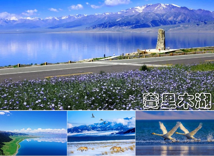 賽里木湖風景區( 今晚住宿賽里木湖) 賽里木湖|「大西洋最後一滴眼淚」,是一個集山、湖、林、草、濕地、冰川等原生態景觀為一體的風景名勝區。 賽里木湖古稱“淨海”,蒙語稱“賽裏木淖爾”,意為“山脊樑上的湖” 。賽湖像一顆璀璨的藍寶石高懸於西天山之間的斷陷盆地中,湖中群山環繞,天水相映;隆冬季節賽里木湖瑞雪飛舞,銀裝素裹,雪湧水凝,蔥萃的蒼松與潔白的雪被交相輝映,構成一派北國林海雪原的壯闊景色;春夏季節,湖畔廣闊的草地上,牧草如茵、黃花遍地、牛羊如雲、牧歌悠悠、氈房點點、構成一幅充滿詩情畫意的古絲路畫卷,可以使人們充分領略回歸自然的浪漫情懷與寒外獨特的民族文化。賽湖長期以來還流傳著湖怪、湖心風洞、旋渦與湖底磁場等傳說,這給美麗的 賽里木湖又蒙上了一層極富想像力的神秘面紗。有人總結了“賽里木湖十景”,即“金緞鑲邊”、“科山觀松”、“淨海七彩”、“湖心情侶”、“激浪擁堤”、“綠海珍珠”、“烏孫古塚”、“富士東峙”、“賽湖躍金”和“松頭霧瀑”。 賽里木湖是未來青年情侶結婚度假的絕佳聖地。