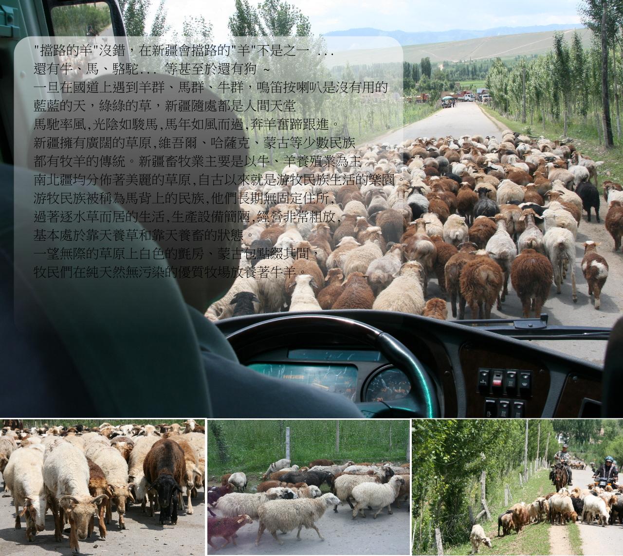 第 21 天 10/27 喀什(換乘越野車) / 牲畜巴紮 /慕士塔格峰/布倫口白沙湖/卡拉庫裏湖/塔合曼濕地景觀台/塔合曼樹洞、塔什庫爾幹 / 塔什庫爾幹塔吉克自治縣 今早我們換上越野車沿著令人嚮往的帕米爾高原前往南疆最美的仙境 ~ ● 喀什牲畜巴紮 您一定要來一趟牲畜巴紮走走 .... 一進到真正的牲畜叫賣場時,首先見到的是一攤攤販賣著各式各樣的新疆傳統美食的攤子,每個攤子正在忙碌著,剁羊肉、備料、包餡...有的招呼客人,還有的忙著撈冒著蒸汽的鍋裡美時,哈著熱汽成煙的氣溫下維族人用熱鬧讓天氣昇溫了幾度。“保證新鮮,現殺現宰剛下鍋的!在這裡就可以看到”羊肉是新疆的主食"耶 ~每一攤的熱食都是搶搶滾的好到一個不行,饕客們一面買牛羊、一面吃著羊肉,這可說是喀什天經地義的日常生活。牲畜巴紮不是只有賣牛、羊而已,幾乎所有四隻腳的都在這裡,除了羊是大宗貨物外,還有牛、馬、驢子 .... 等,熱鬧非常。沒有明顯的界線,但每個賣家卻都有十足的默契在分區販售。