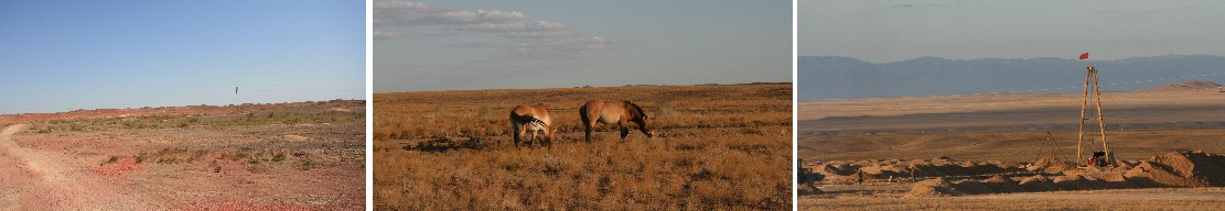 早餐後後專車前往位於準噶爾盆地東南,途經古爾班通古特沙漠腹地;這個沙漠的型態和塔克拉瑪乾沙漠不同,它不是那種寸草不生的流動沙山,而是固定和半固定的沙丘,沙丘上生長著梭梭,紅柳和胡楊,沙漠下蘊含著豐富的石油資源。路的左邊都是彩南油田的採礦工作面,彩南油田是中國投入開發的第一個百萬噸自動化沙漠整裝油田。