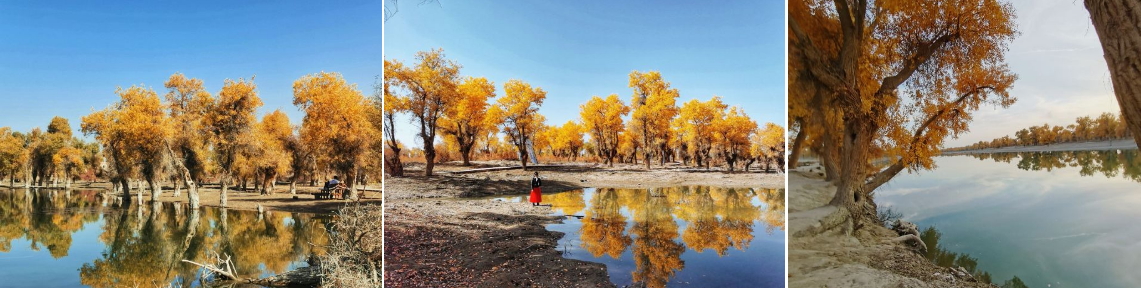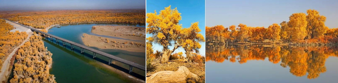 ● 天然胡楊林自然保護區 怎麼可以這麼美!怎麼可以這麼美!怎麼可以這麼美!! 這裡是塔里木河最美的沙漠水上胡楊林,每一個來過的人都這樣的驚呼著。 這是一個原始生態的胡楊林自然公園,也是保存最完好、世界最大的胡楊林,也是國家自然保護區,面積高達200餘萬畝。以千姿百態、蒼勁挺拔的胡楊樹而得名,沒有大門,沒有柵欄,更沒有討厭的人造景觀,帝寶假期為您安排最美的原生態公園。 秋季是胡楊林在一年中最美麗的時節,金秋光影,色彩盛宴,作為擁有世界上面積最大保存最完好的原始胡楊林的新疆,以其大漠胡楊、塔河胡楊向人們展示了一副胡楊林壯美綺麗的畫卷。 深秋時節,形態各異的胡楊一片金色,尤為壯觀,是塔里木河岸上一道亮麗的風景線。胡楊林自然保護區中有大量的野兔、野雞、野豬、狐狸、刺猬、塔里木馬鹿、盤羊、羚羊和上百種鳥類,還分佈著大量的甘草、羅布麻、大芸、紅柳等名貴野生植物。