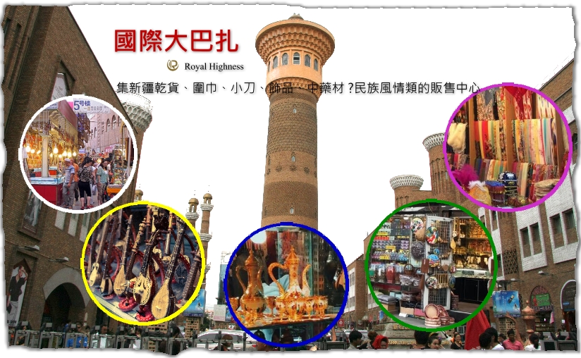 第 11 天 10/17 伊寧 / 烏魯木齊 / 國際大巴紮 / ● 國際大巴紮 新疆國際大巴扎具有濃郁的伊斯蘭建築風格,在涵蓋了建築的功能性和時代感的基礎上,重現了古絲綢之路的繁華,集中體現了濃鬱西域民族特色和地域文化。國際大巴扎占地面積39888平方 公尺,總建築面積10萬平方公尺。新疆國際大巴扎是新疆商業與 旅遊繁榮的象徵,也是烏魯木齊作爲少數民族城市的景觀建築,又是一座標志性建築。旅遊工藝精品店――國際大巴扎工藝品店 位於國際大巴扎歡樂廣場,專營國際大巴扎品牌旅遊紀念品,由專業設計師繪萃新疆各民族特色文化製作的旅遊紀念品,每一件都承載了深厚的文化底蘊,品質上乘,具有一定收藏價值。